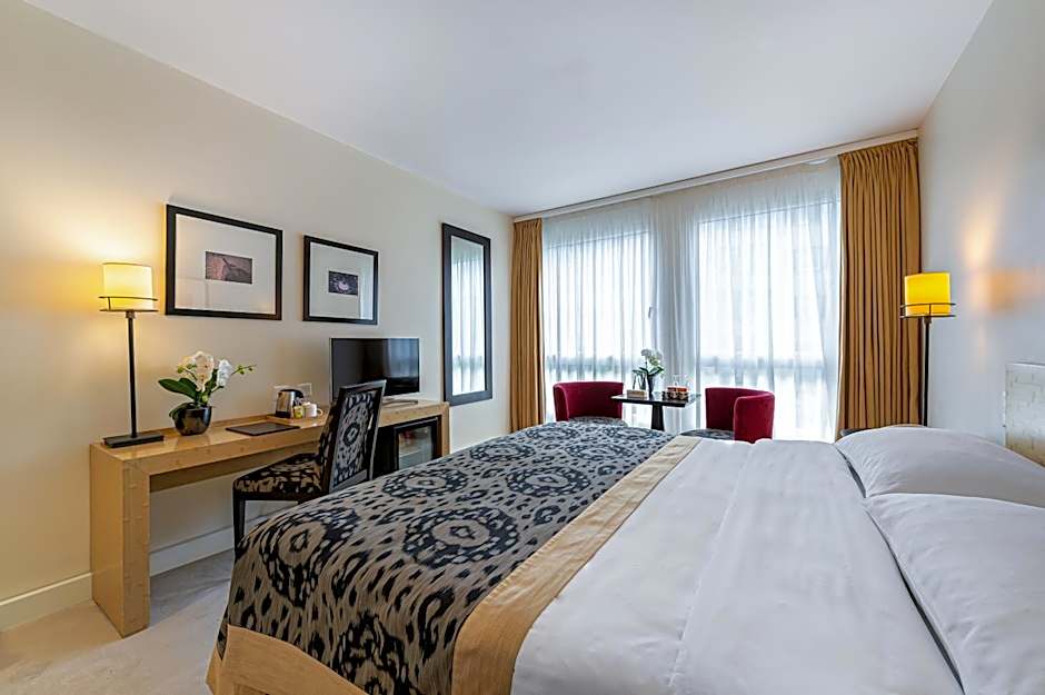 Spacious, air-conditioned room with a seating area, satellite TV, a mini-bar, and a tea/coffee maker.