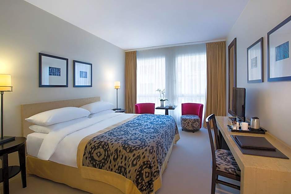 Spacious, air-conditioned room with a seating area, satellite TV, a mini-bar, and a tea/coffee maker.